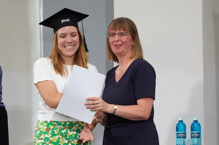 Geehrt wurden die erste Absolventin und der erste Absolvent des Studiengangs Lebensmittelsicherheit, Lea Unvericht und Nils Dächert. Sie erhielten Preise für ihre Bachelor-Thesen. Lea Unvericht widmete sich dem Thema „Umsetzung eines Food Fraud-Prevention-Systems in einem mittelständischen Unternehmen", ihr Kommilitone der „Erstellung eines HACCP-Konzepts für Honig". Die Peter Romeis-Stiftung, deren Zweck die Förderung der Bildung und Ausbildung sowie von Wissenschaft und Forschung im Bereich Brau-, Getränke- und Lebensmitteltechnologie ist, bedachte beide mit Buchpreisen und Seminareinladungen.